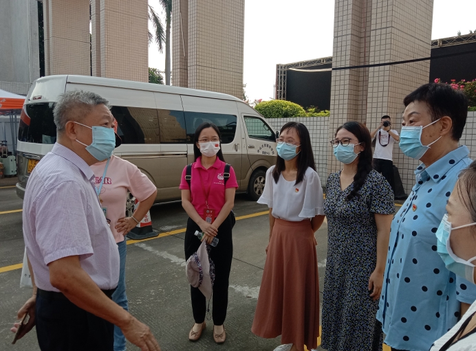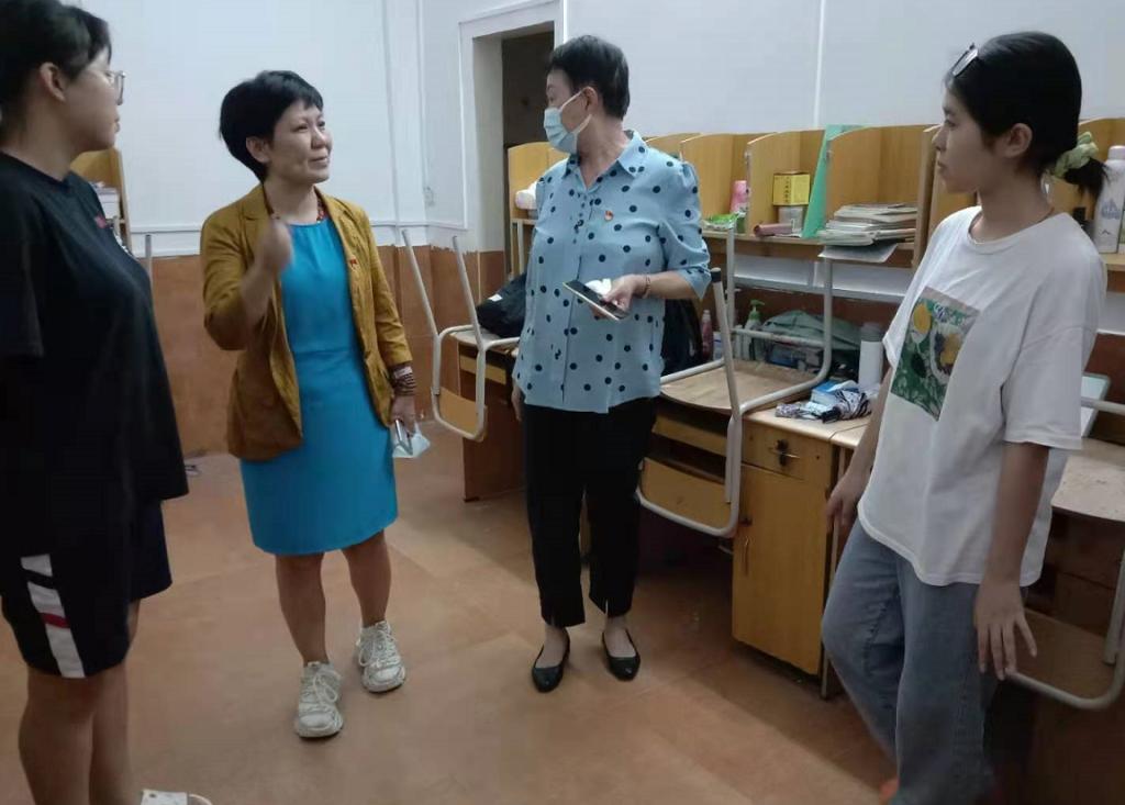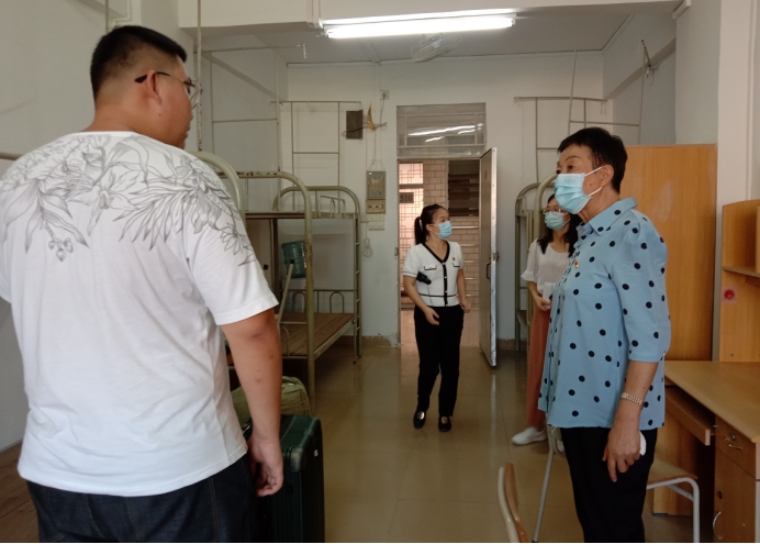 图为beat365中文登录入口王秀岚院长、党总支书记于凤兰老师等一行走访学生宿舍
