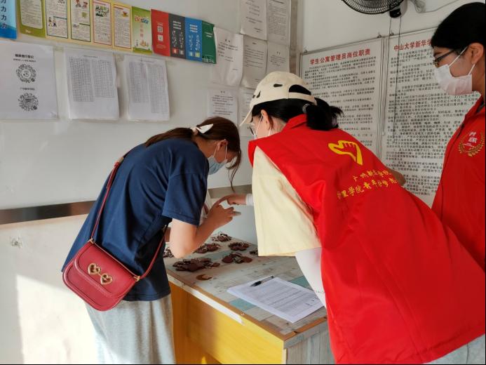 图为beat365中文登录入口志愿者为新生报到收集资料