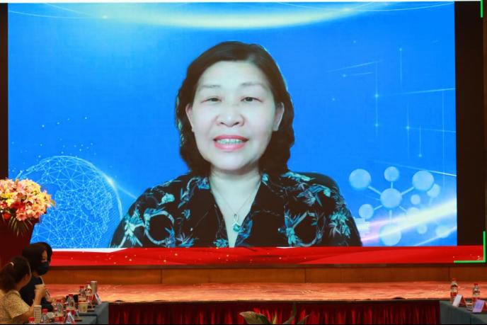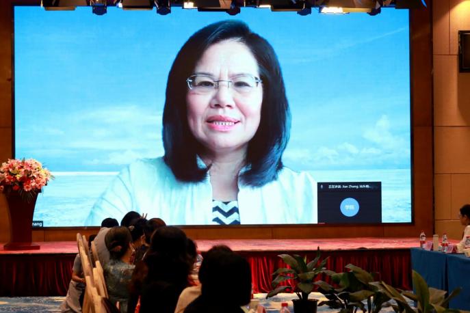 广东省护理学会副理事长、秘书长周丽华在线上会议中宣读决定