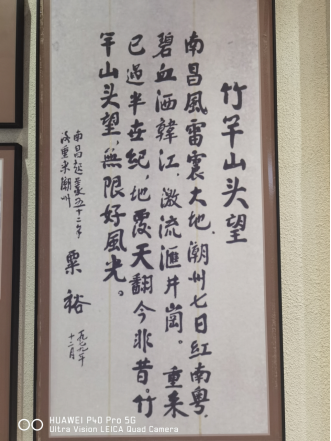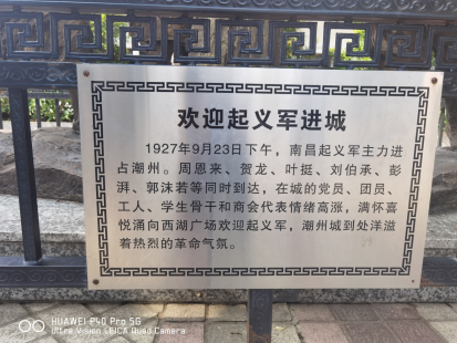涵碧楼革命纪念馆作为省中共党史教育基地、省爱国主义教育基地,展示了1927年南昌起义军进入潮汕这段光荣历史。1927年8月1日,中国共产党领导的革命队伍在南昌起义,打响了武装反抗国民党的第一枪。同年9月,起义部队在周恩来、朱德、贺龙、叶挺等的率领下南下潮州,在潮州建立了历时七天的红色政权——潮安县革命委员会。这段历史,被称为“潮州七日红”。