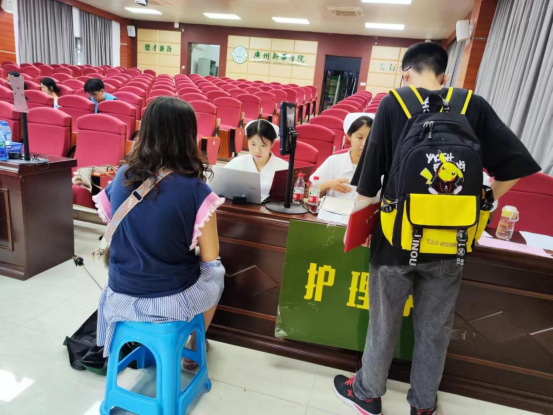 为了迎接大家的到来,在校园内、宿舍外随处可见的志愿者们以高涨的热情和周全的准备,有条不紊、热情地接待专升本新生们,为他们指引道路、提行李,全面助力专升本新生报到工作。