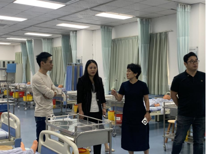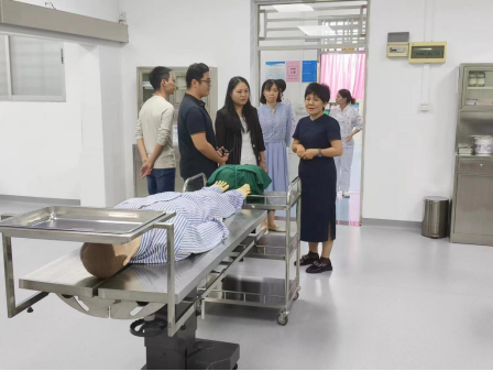 在面试开始之前,王院长陪同惠亚医院的各位领导,参观护理实验实训中心,他们分别来到了护理基础实验室、模拟妇产科病房、模拟实验室、内外科病房,王院长详细介绍了各个实验室的设备和器材。医院的领导老师对我院完备的基础设施表示肯定和赞赏。