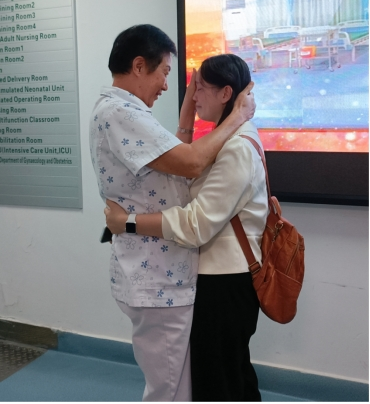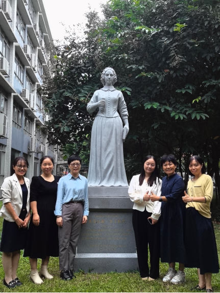 图四:刘静媚与粤北人民医院护理部的护长同事回“母校”挑选实习生