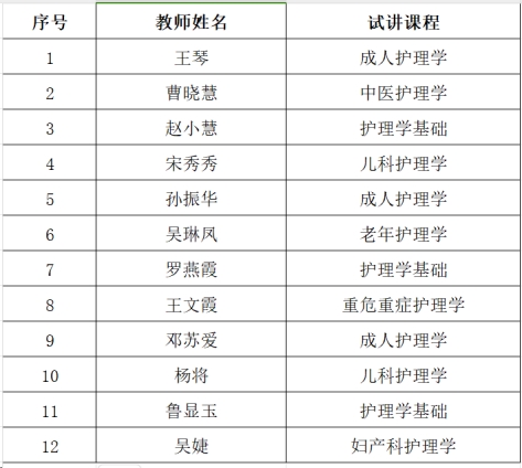 试讲后评委们再逐一进行点评。在8分钟的试讲中,新进教师们以上进、积极的精神风貌和稳健的台风获得了教授评委们充分的肯定,评委们亦从课堂设计、教学内容、PPT及板书设计、教学方法、课程思政等方面提出了真诚而有建设性的意见,如建议合理设计课堂;应用情境加强学生的代入感;课堂内容须分清略讲和重讲、用词须准确;课堂举例应贴切护理、贴近生活;时间与内容配比的合理性;PPT设计中字体、颜色、图片、视频、表格的重要性等。