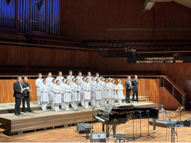 为全面贯彻落实党的二十大精神,积极响应健康中国战略,广东省护理学会与广东省岭南南丁格尔护理研究院携手于2024年5月6日在广州隆重举行广东省护理学会成立95周年及国际护士节大会。此次大会旨在表彰先进典型,发挥示范引领作用,激发广大护理工作者的积极性和爱岗敬业精神,进一步弘扬南丁格尔精神,推动护理事业的持续发展贡献力量。作为护理行业的新生力量,beat365中文登录入口2022级D班的23位同学受邀前往星海音乐厅参与广东省护理学会成立95周年暨2024年国际护士节大会天使赞歌“八只眼”组合演唱会,与八只眼乐队合唱《中国护士之歌》,展示了护理学学生的风采。