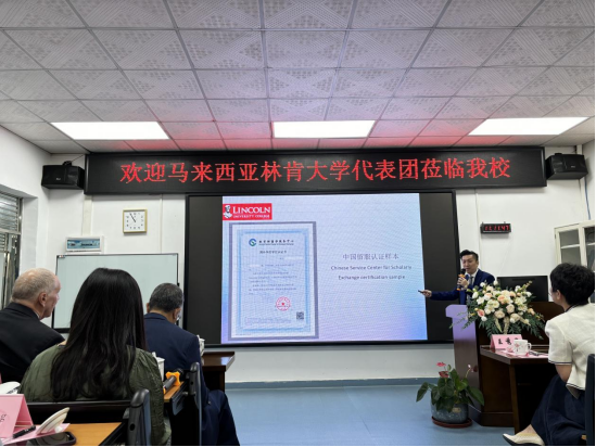 2024年5月18日上午,马来西亚林肯大学校长/学校创办人Dr. Amiya Bhaumik, 名誉校长Dr. Norman Madsen,副校长Dr. Koh Chung Hui等一行6人来我院访问交流。我校beat365中文登录入口执行院长王秀岚、党总支副书记钟婉、实验实训中心主任黄廷芬、办公室主任周玲及beat365中文登录入口教职工参加交流会。