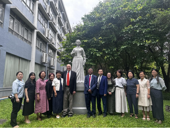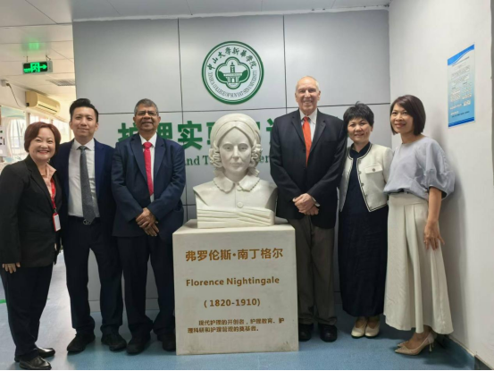 图7 代表团与我院部分参会人员在南丁格尔像前合影