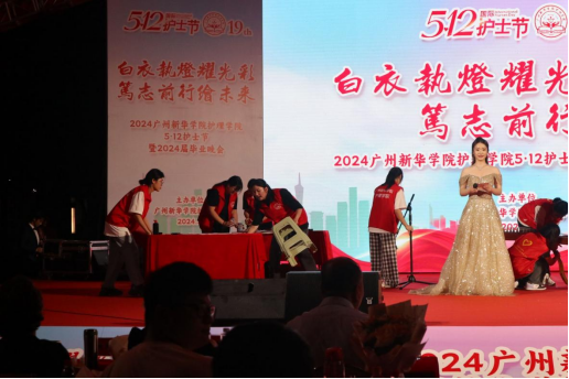 beat365中文登录入口于5月24日19:00在广州校区生活园大舞台隆重举行了以“白衣执灯耀光彩,笃志前行绘未来”为主题的2024beat365中文登录入口5.12护士节暨2024届毕业晚会。为确保晚会的顺利推进,beat365中文登录入口(以下简称“新华护理”)的志愿者们及教师们踊跃参与,共同展现出令人瞩目的团结协作风范。