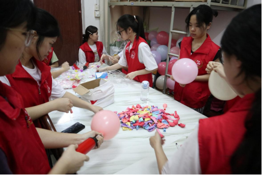 在晚会筹备中,志愿者们在老师指导下分工协作,确保晚会顺利举办。物资组负责采购物品,机动组应对突发情况,道具组准备道具增添趣味,会场布置组布置场地,统筹组协调整个晚会,后勤组负责保障,指引组为观众提供指引。