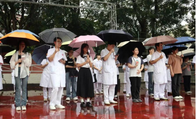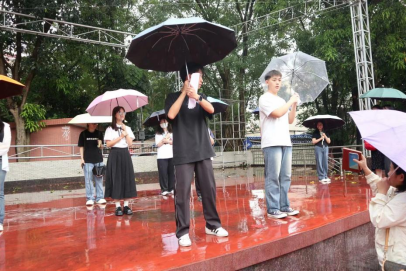 印象最深刻的是雨天的户外排练,表演学生和辅导员们撑着伞,站在湿漉漉的场地上,认真地排练着每一个动作,每一个表情。可敬可亲的辅导员们不仅要亲自参与排练,确保每一个细节都做到位,还要时刻关注表演学生的状态,确保学生的安全。在雨中,她们不停地穿梭在队伍之间,指导着每一个动作,纠正着每一个错误。她们的鞋子和衣物早已湿透,但却毫不在意,只是默默地付出着。在这场雨天的排练中,辅导员们用自己的实际行动诠释了什么叫做真正的敬业和付出。