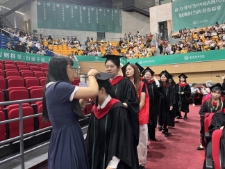 候场区中,毕业生们既期待又紧张地等候着参加学位授予仪式,雀跃的心情溢于言表。辅导员们细心地为每一位毕业生检查、整理着装,确保他们以最佳的状态迎接这个人生的重要时刻。