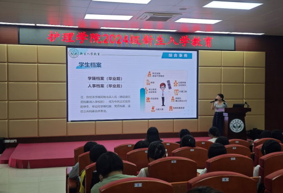 图3:朱晓洁老师向同学们介绍学生档案相关事宜