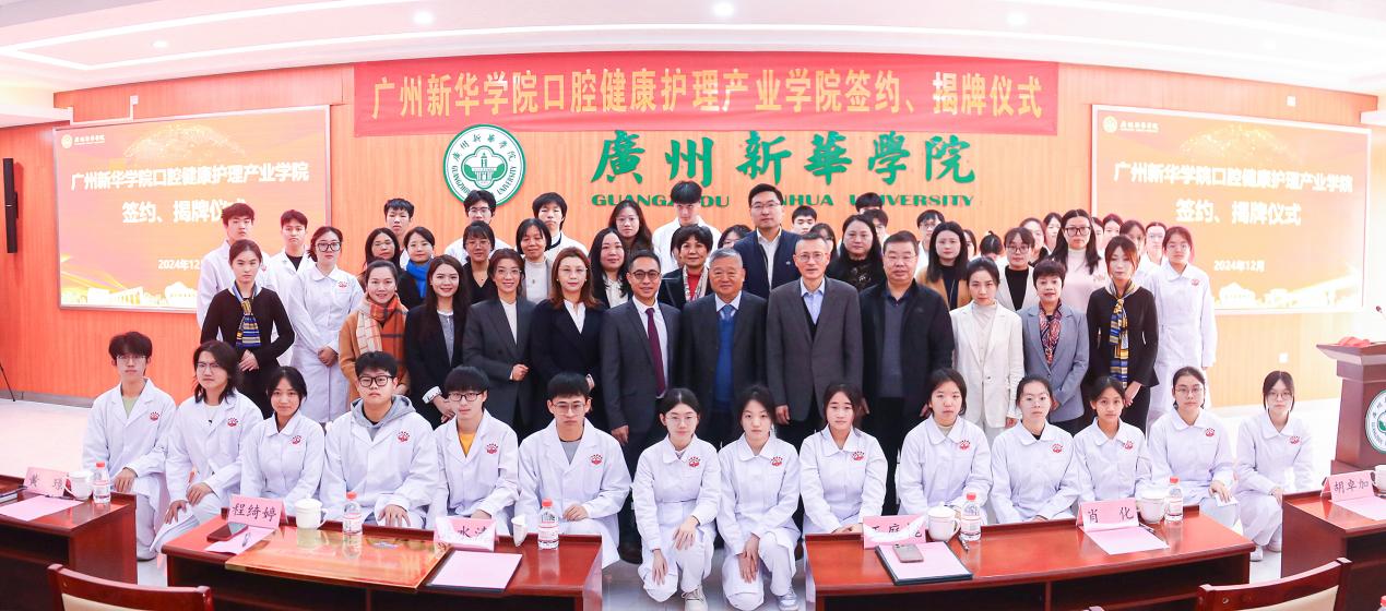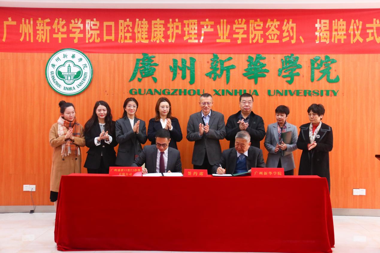 为适应应用型本科院校发展的需要,促进产学共建产教融合,推进“四新”建设,全面提高我校应用型人才培养质量,beat365中文登录入口(以下简称“我校”)联合广州盛世口腔门诊部有限公司(以下简称“盛世口腔”)成立了口腔健康产业学院。2024年12月31日,在广州校区第一会议室举行口腔健康产业学院签约、揭牌仪式。