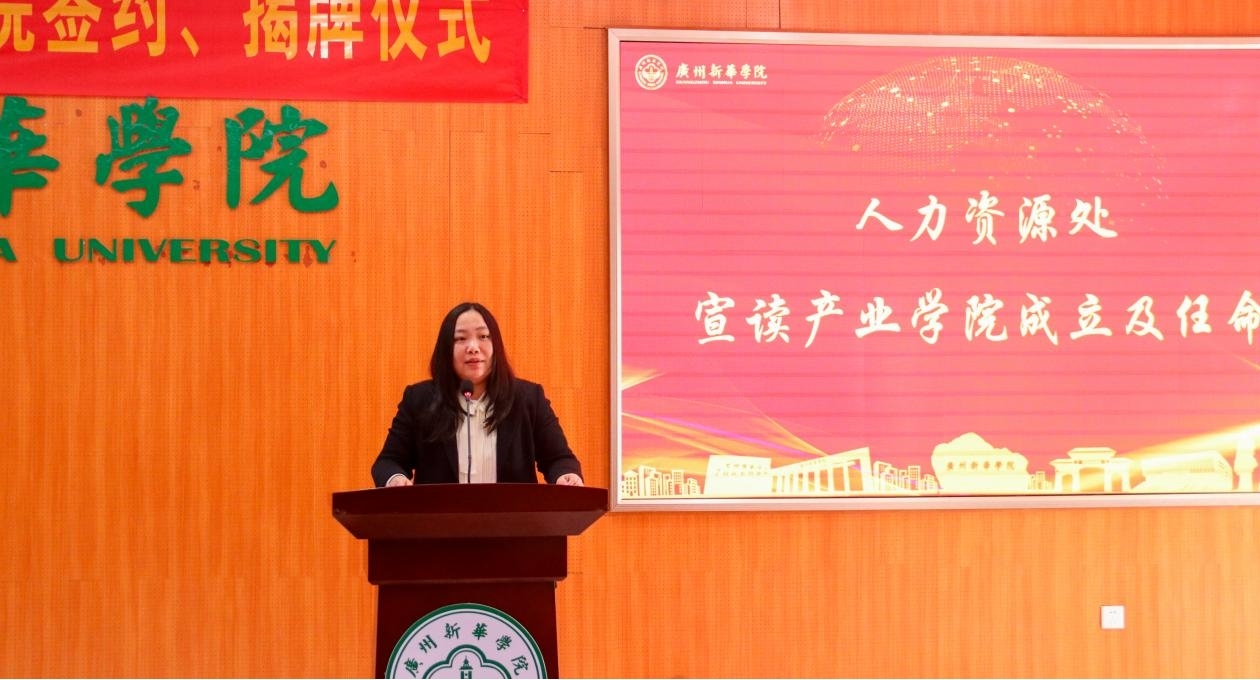 图六 我校人力资源管理处副处长郑锦伍宣读产业学院成立及任命的通知文件