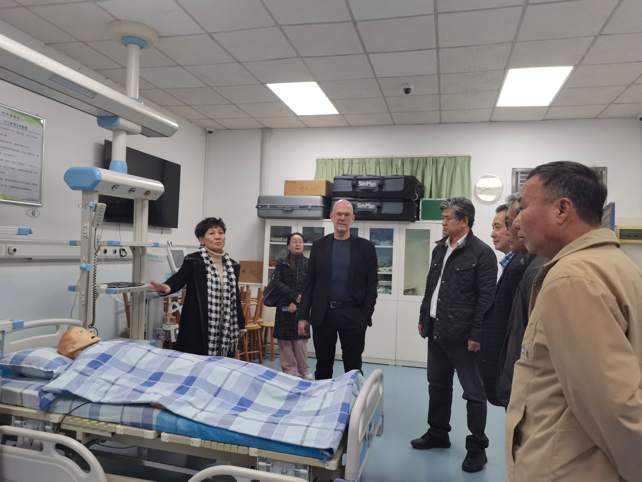 活动伊始,北欧可持续发展集团的嘉宾们在beat365中文登录入口院长王秀岚教授的陪同下,参观了学院的护理实验室。实验室先进的设备和完善的教学设施给嘉宾们留下了深刻的印象,展示了学院在护理教育方面的硬件实力。