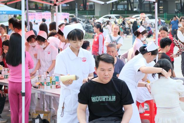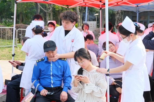 在中医护理专区,推拿按摩、艾灸理疗、耳穴压豆等传统疗法吸引众多市民体验,师生志愿者通过手法调理帮助缓解肩颈酸痛、疲劳等亚健康问题。耳穴压豆和推拿按摩服务深受市民欢迎,不少体验者感慨,这些传统疗法既舒适又有效,希望以后能有更多机会尝试。