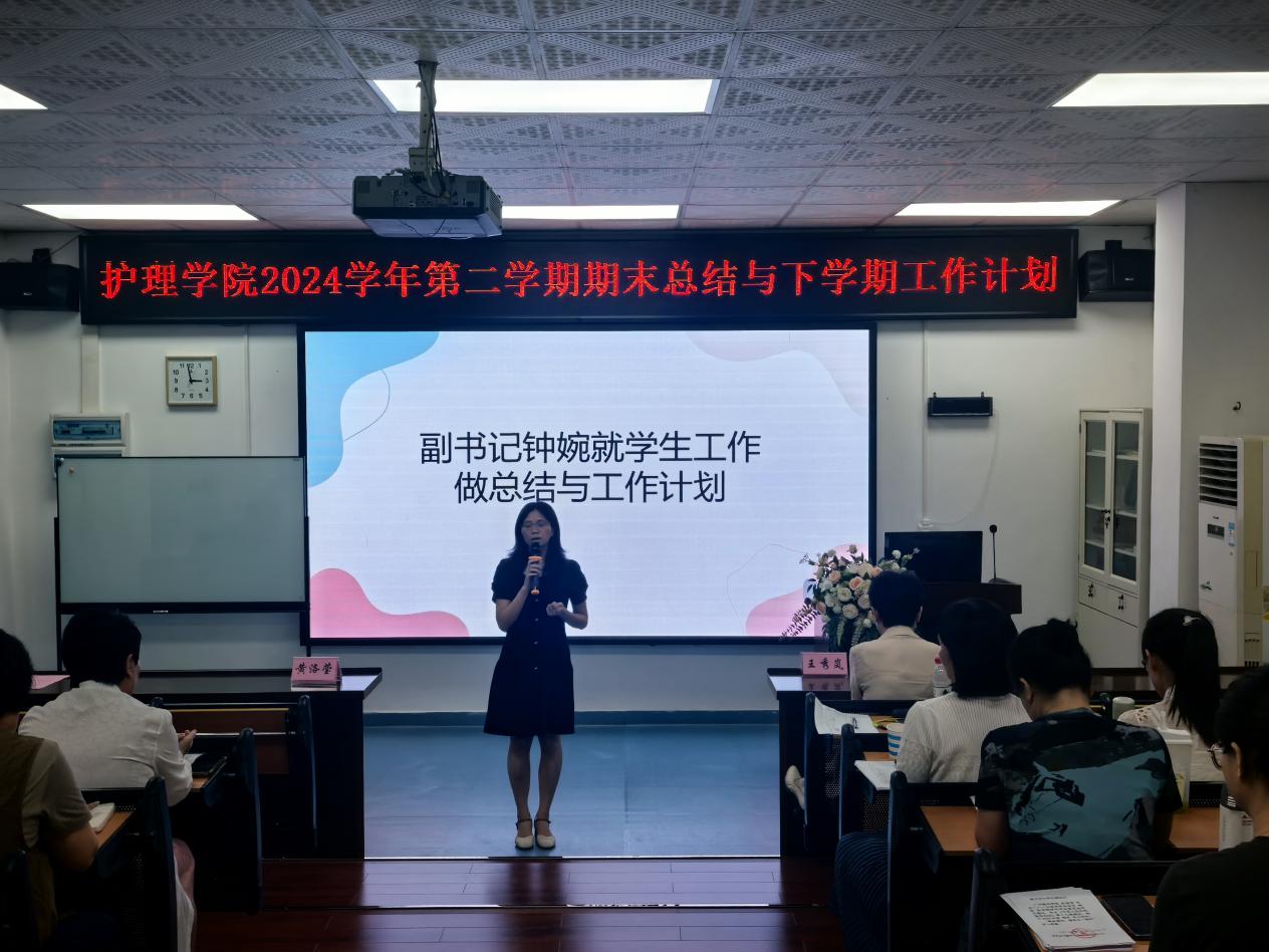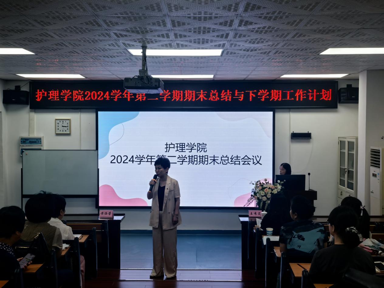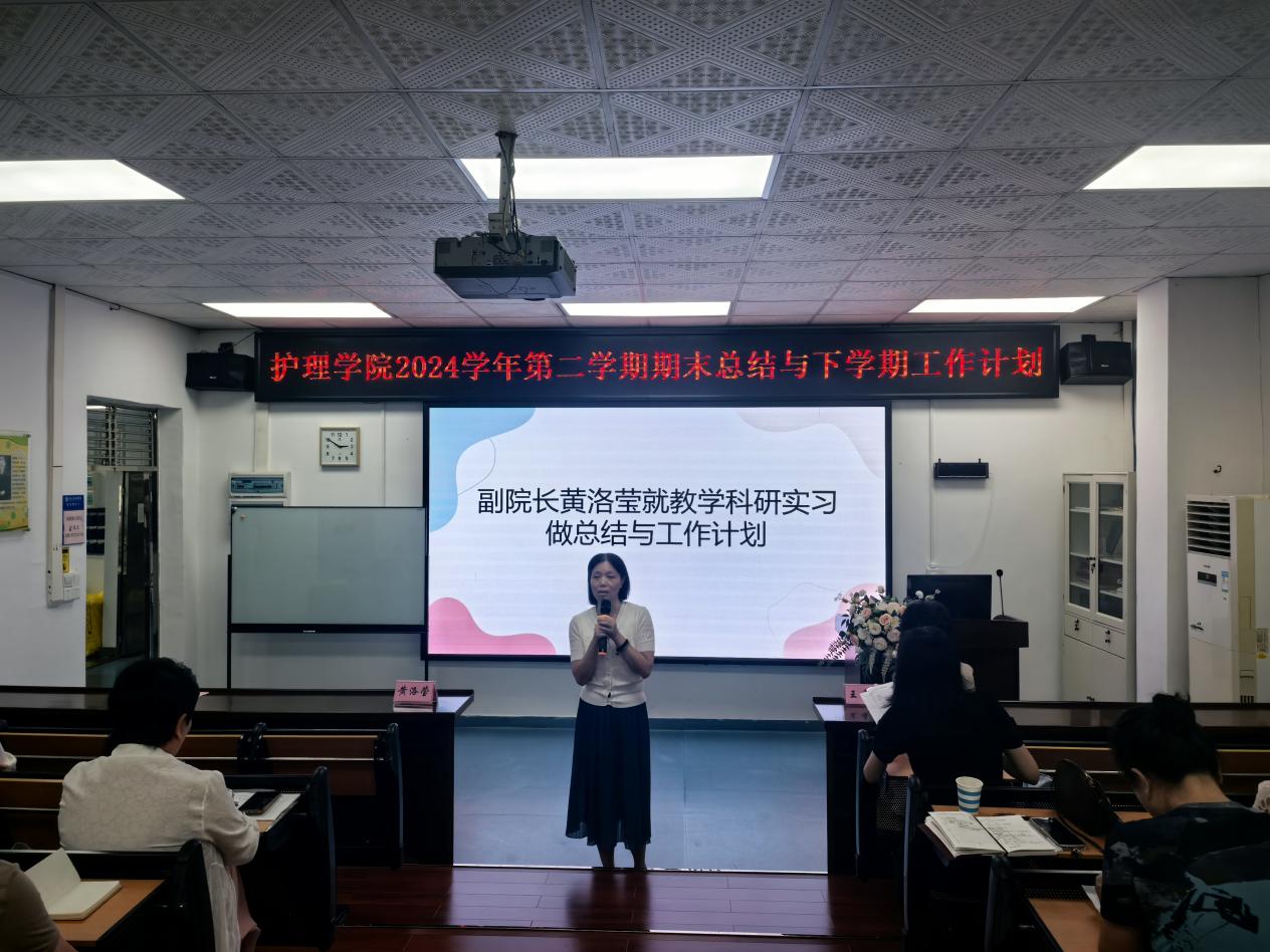 接着,黄洛莹副院长就教学研究、科研和实习工作进行了深入的剖析和总结,包括实习情况、科研申报、教学改革、课程建设、教师发展等方面,对全体教师的努力和贡献给予了肯定。