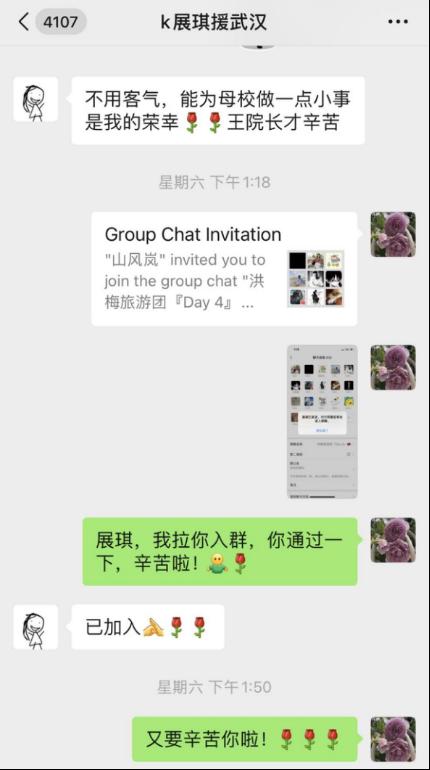 图为王秀岚院长邀请张展琪校友加入学生群