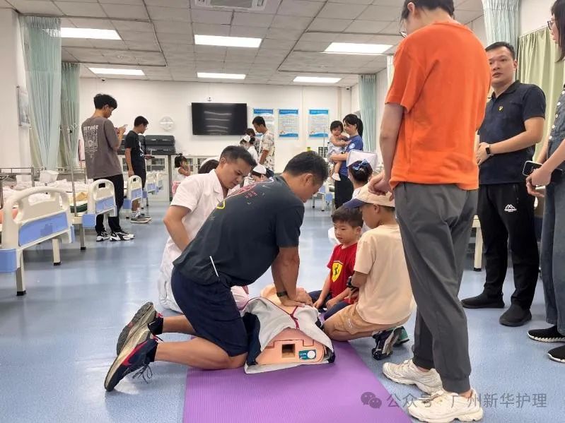 CPR和AED项目由莫谈健老师与黄珍霞老师进行培训,经过他们的专业讲解,参与者们对在心脏骤停等紧急状况下如何精准施行心肺复苏术和AED操作的关键步骤与要点有了深刻且明确的认识。大人们和孩子们都亲身参与了模拟人心肺复苏的模拟演练,他们全神贯注、热情高涨,充分展现了对这项生命拯救技能的认真态度与高度投入。