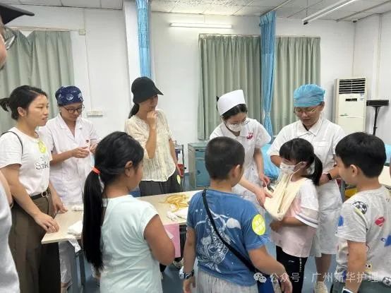 在创伤急救项目,王文霞老师和杨杨老师通过生动具体的演练和细致的包扎示范,带着参与者们逐步掌握了处理各类常见创伤的关键技巧,包括止血、包扎与固定等。这一过程不激发了小朋友们的学习热情。他们积极参与其中,练习时全神贯注,现场气氛热烈而高涨,充分展现了急救知识的实用性和重要性。