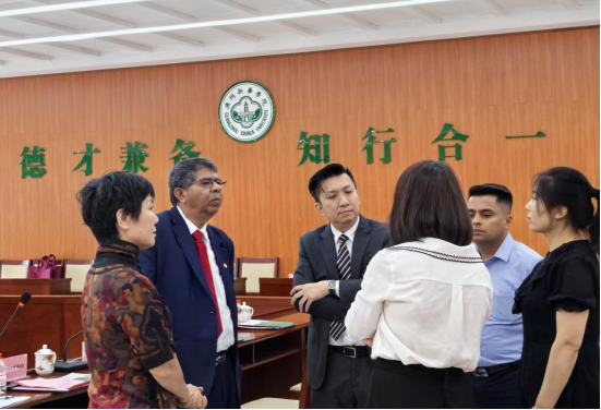 图6 beat365中文登录入口院长王秀岚与马来西亚林肯大学学院洽谈